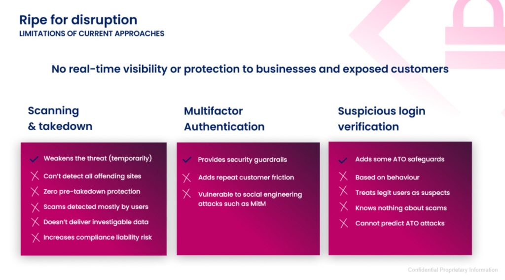 Most fraud teams still rely on external vendors to scan the web for phishing sites and take them down. But here’s the catch: takedowns are often too late to stop fraud, and they tell you nothing about who was targeted, how users were deceived, or where credentials are headed. Even multifactor authentication and suspicious login verification, essential though they are, leave gaps of missing insight and vulnerabilities.